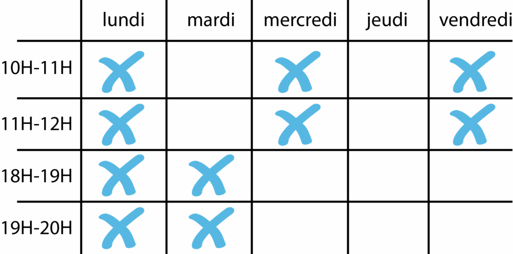- 19h-20h: Gym tonic, Cross training, Cardio (adultes)